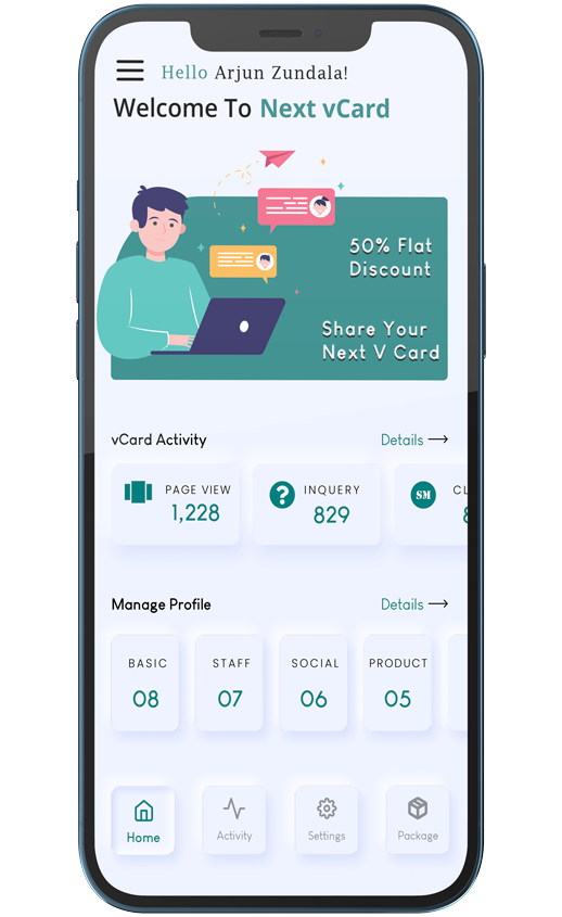 A Next vCard may be a virtual digital illustration of your profile with details as well as your personal info, bank details, contact details and plenty of additional. Digital Card permits the planet to urge up-to-date with you in a very additional less complicated and convenient manner. It provides you the posh of flexibility, customization and privacy controls for your profile to stay your information safe. enabling everybody to share their info beneath one link.